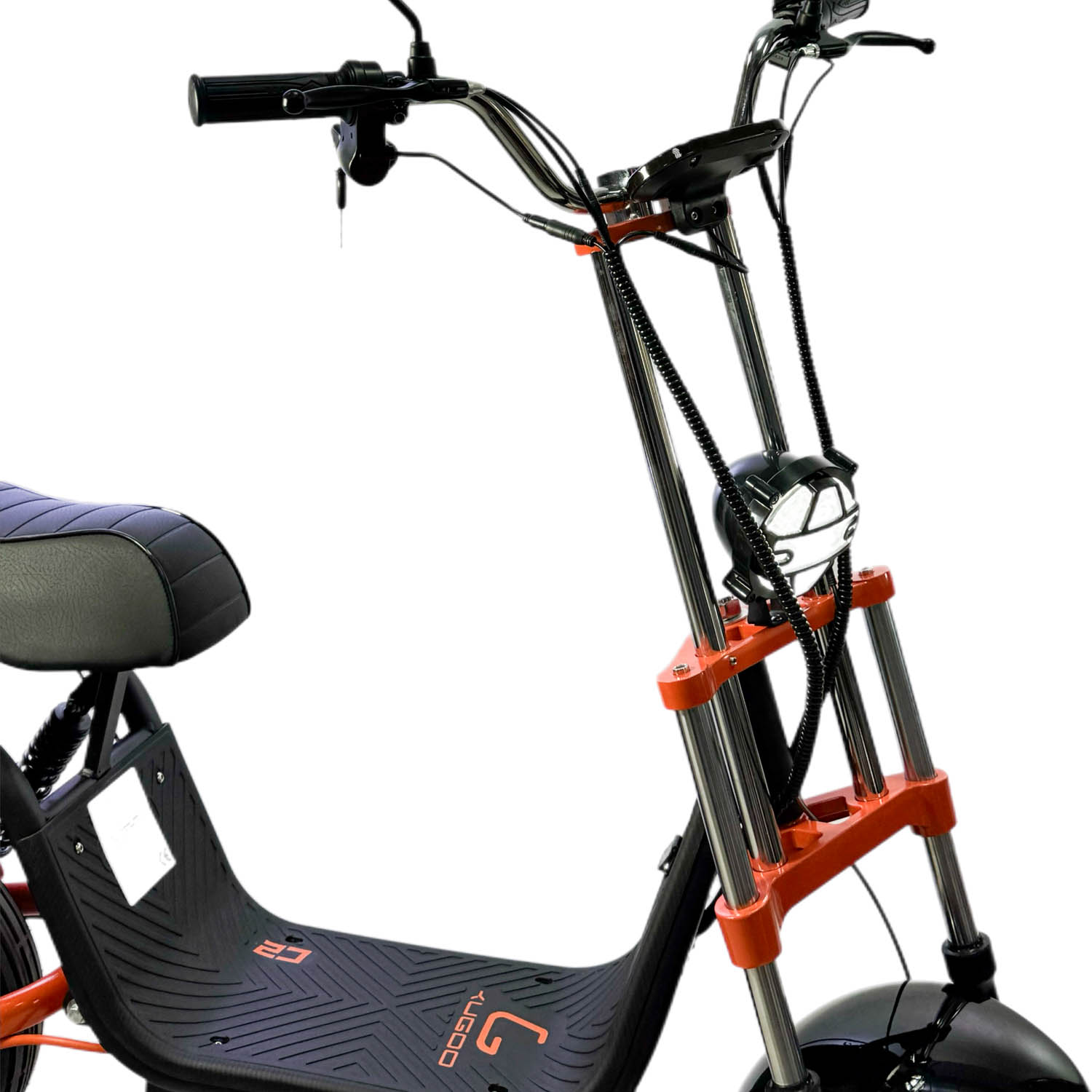 Встречайте новинку года — электроскутер Kirin С2, созданный для тех, кто ценит скорость, дальность пробега и высокий уровень надежности. Kirin C2 оснащается парой пневматических шин и комплектом дисковых тормозов (передние гидравлические и задние механические), обеспечивая исключительную управляемость и безопасность. Его легкая рама из авиационного алюминия способствует удобству и уменьшению общего веса скутера, а двухместное сиденье дает возможность взять второго пассажира для поездок.