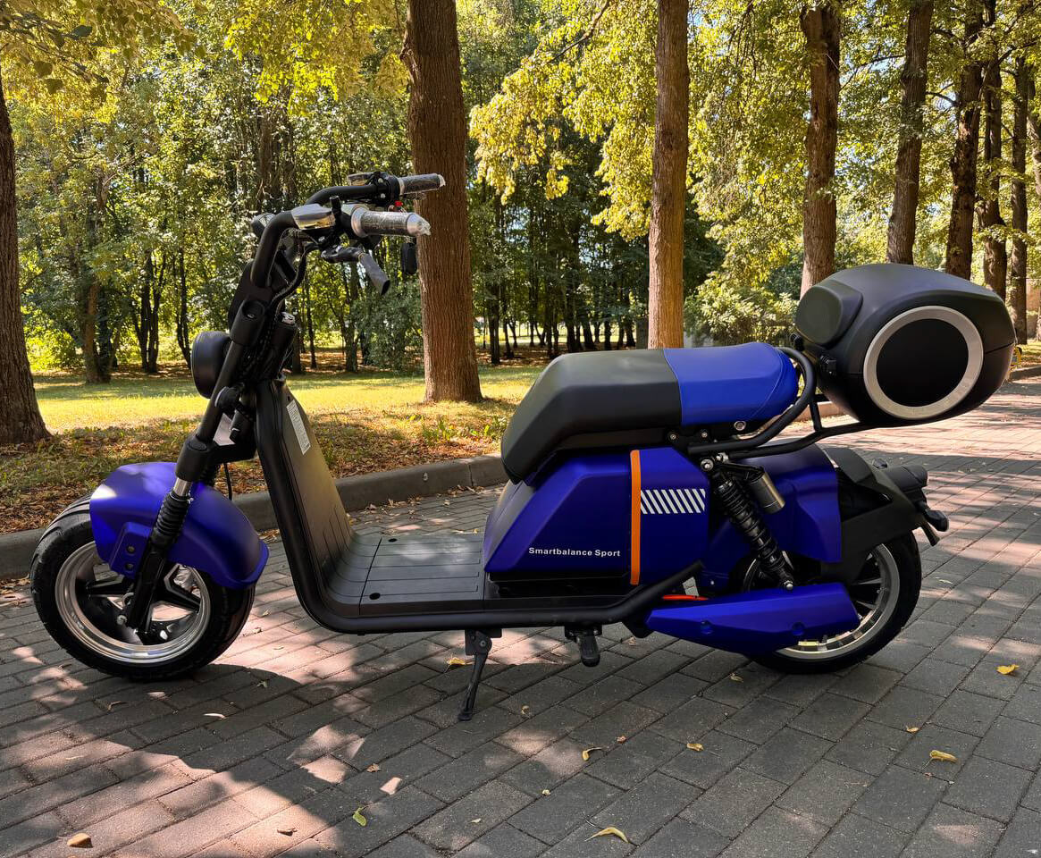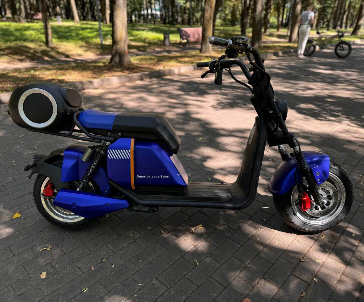 В сезоне 2024 года появилась очередная новинка – электроскутер Smart Balance Sport. Его характеристики впечатляют: несмотря на свой внешний вид, мощный двигатель на 3000 Вт способен проявить зверские возможности. Аккумуляторная батарея емкостью 30 Ач позволяет проехать до 50 км на одном заряде.