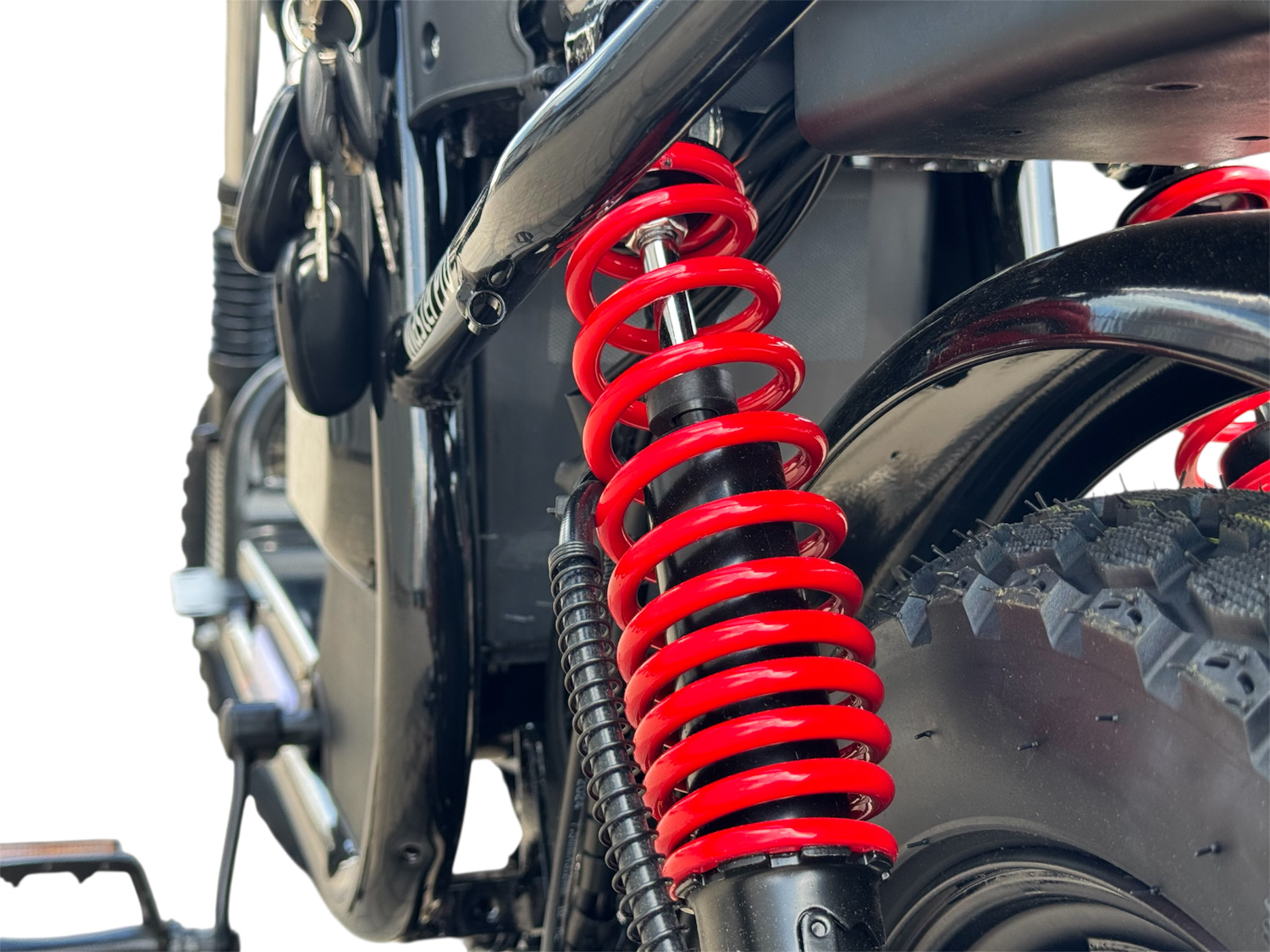 Электровелосипед имеет переднюю амортизационную вилку и заднюю пружинную амортизацию, что обеспечивает плавное и комфортное движение даже по неровным дорогам. Дисковые гидравлические тормоза обеспечивают надежное и быстрое торможение в любых условиях. Подсветка деки придает стильный внешний вид и обеспечивает дополнительную безопасность в темное время суток. Защита от влаги IP68 гарантирует долговечность и надежность устройства даже в неблагоприятных погодных условиях.