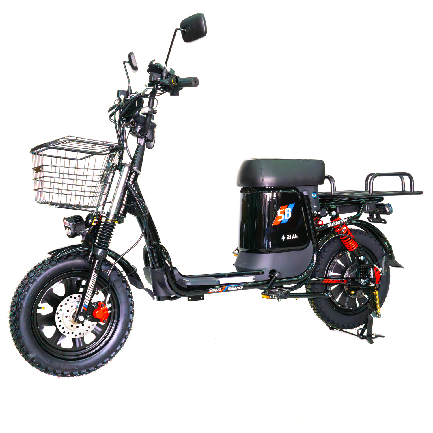 SmartBalance Master Pro — это электровелосипед, обеспечивающий высокую мощность и максимальный комфорт. Оснащенный просторным багажником и корзиной, он идеально подходит как для курьеров, так и для перевозки личных вещей. Мотор-колесо мощностью 240 Вт гарантирует быстрый старт и уверенное движение даже по сложным маршрутам. Съемный аккумулятор емкостью 60 В 21/30 Ач позволяет преодолевать значительные расстояния без частой подзарядки. Колеса диаметром 16 дюймов с вседорожными покрышками отлично подойдут для городских улиц и легкого бездорожья.