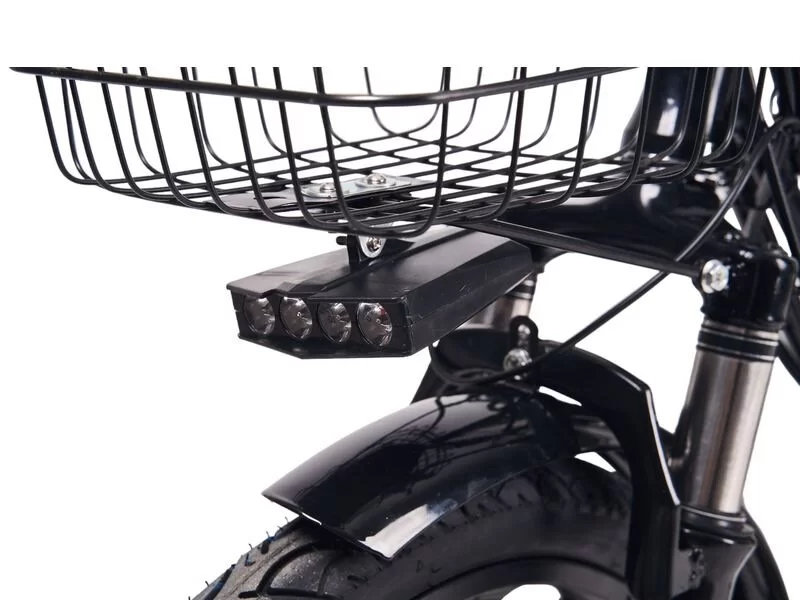 Оснащённая передняя фара, стоп-сигнал и поворотники делают поездки безопасными и комфортными. Велосипед оборудован двигателем мощностью 240 Вт с пиковым показателем до 500 Вт, что обеспечивает отличную динамику, а аккумулятор даёт возможность преодолеть до 50 км без подзарядки.