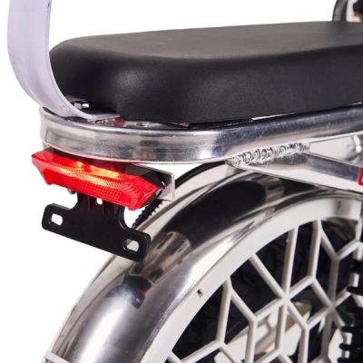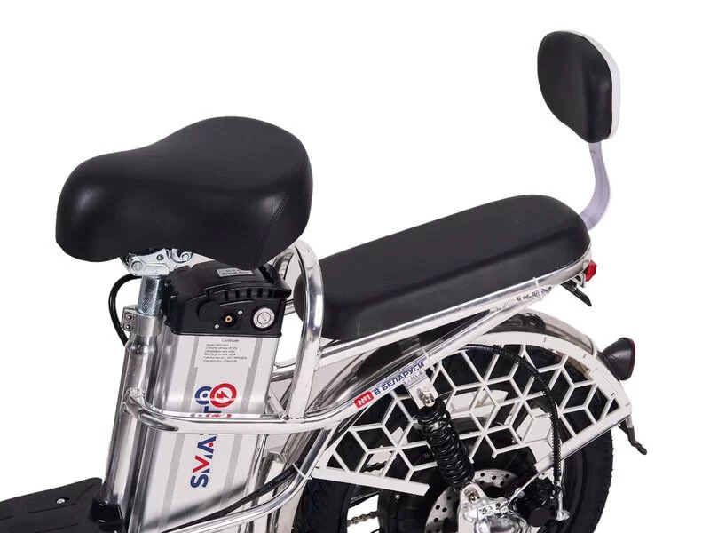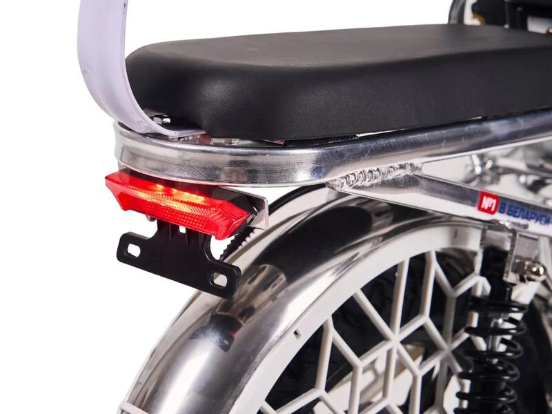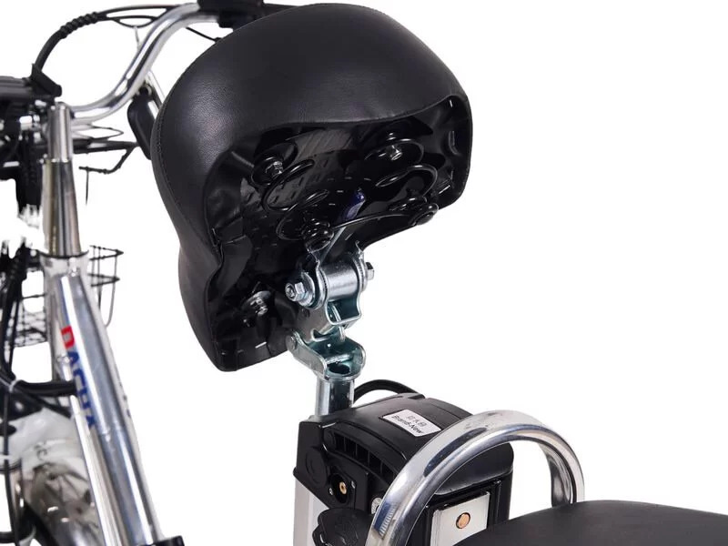 Для комфортной езды предусмотрена амортизационная вилка и задний амортизатор, которые сглаживают неровности дороги. Велосипед также оборудован дополнительным сиденьем для перевозки пассажира.