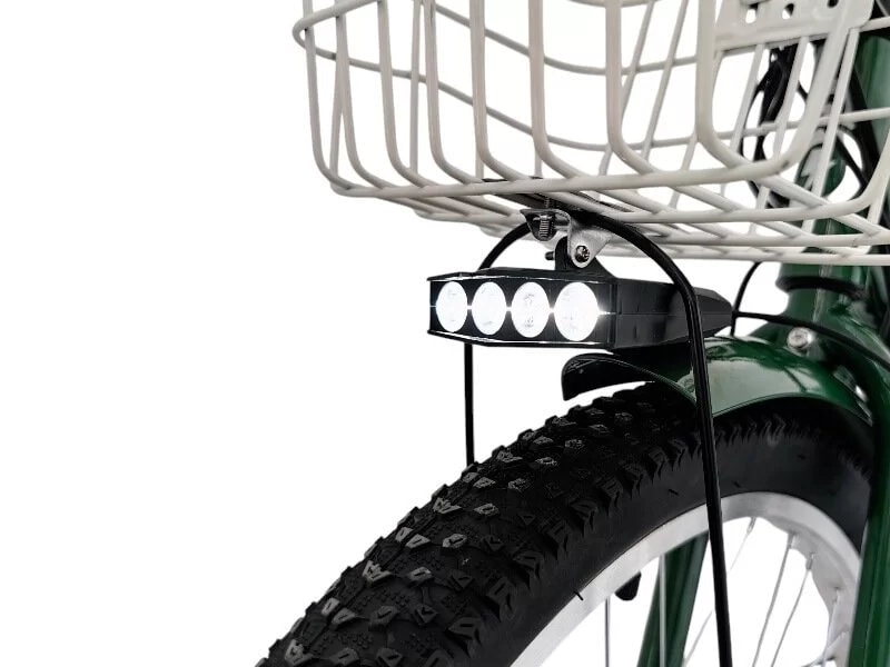 Две просторные корзины — одна между задними колесами и другая на руле — упрощают транспортировку малогабаритных предметов. Колёса диаметром 24 дюйма с улучшенным рисунком протектора добавляют проходимости и устойчивости на сложных участках дороги.