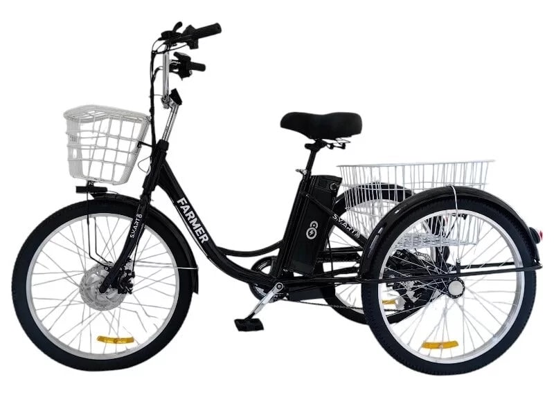 Электровелосипед Smart8 Farmer — надёжный трёхколёсный транспорт, созданный для помощи владельцам небольших ферм и приусадебных участков. Он идеально подходит как для рабочих задач, так и для отдыха на природе.