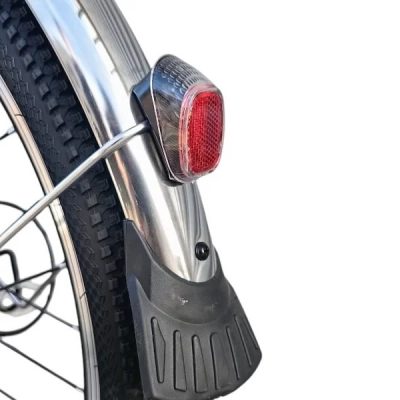 Велосипед оснащён звонком, фонарём и задним щитком, чтобы гарантировать безопасность и удобство в любое время дня. Багажник и корзина спереди обеспечивают возможность перевозки покупок или личных вещей, делая поездки ещё более практичными.
