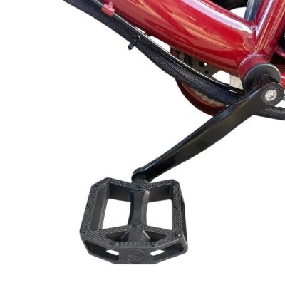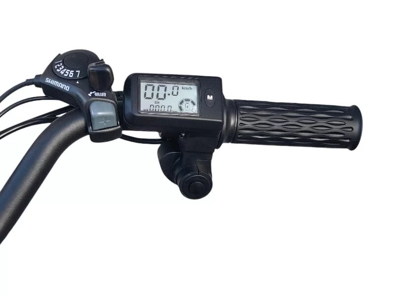 На руле размещён информативный дисплей, отображающий важные данные о поездке, а также простые и удобные кнопки управления. Прочная стальная рама и амортизационная вилка обеспечивают надёжность и комфорт, а платформенные педали с грипсами создают дополнительную устойчивость.