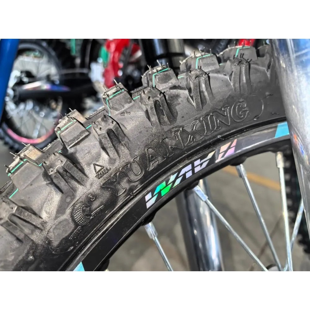 - Шины Yuanxing: передняя 80/100-21 и задняя 110/90-18 — надёжное сцепление и устойчивость на любых покрытиях